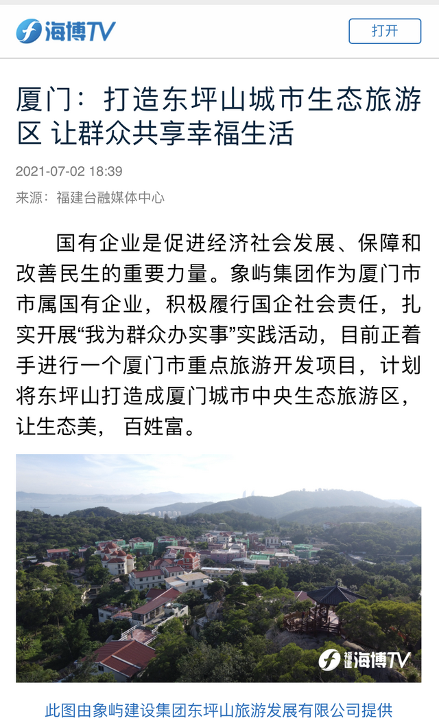 作为东坪山片区发展提升项目的具体实施方,尊龙集团旗下厦门东坪山旅游发展有限公司贯彻“生态美,百姓富”的指导思想,一方面推动村宅改造,一方面围绕东山社“原乡东山”的定位和东坪山社“文化东坪”的定位进行产业植入。公司总经理周远新介绍,村民可自愿选择保留村宅或者下山安置,对保留村宅的村民,推动老旧危房的改造提升,对下山安置后收回的村宅,则积极引入餐饮、住宿等业态,提升旅游配套和产业造血功能。未来,公司将继续探索国企、村集体经济组织、村民共同参股发展生态旅游的新机制、新模式。